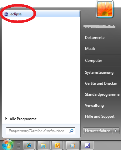 - Von nun an können Sie das Programm Eclipse bequem über das Startrmenü starten.